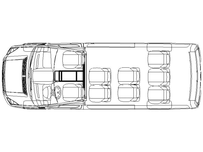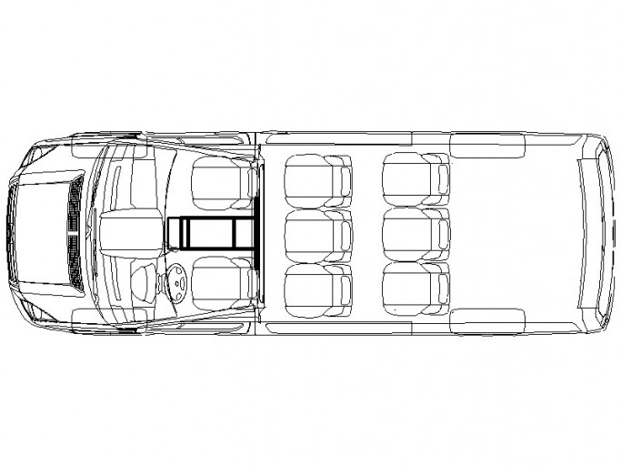 9-Sitzer: Einzelfahrersitz und Einzelbeifahrersitz in der 1. Sitzreihe, 2er Sitzbank in der 2. Sitzreihe, eine 2er Sitzbank in der 3. Sitzreihe und eine 3er Sitzbank in der 4. Sitzreihe