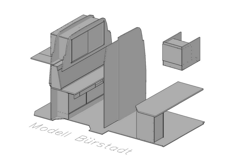 Volkswagen Crafter3640mm Radstand 47,5cm breiten Tisch125cm Geräteraum