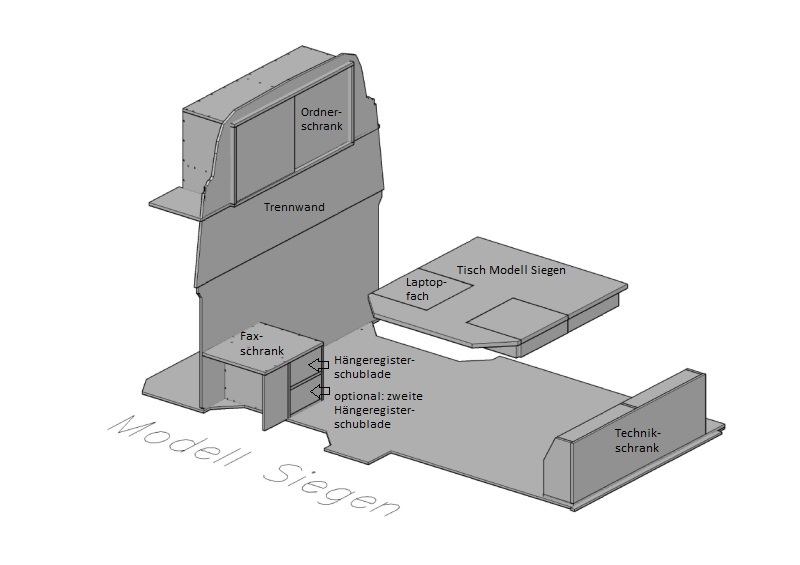 Ford Transit Custom3100mm Radstand47,5cm breiten Tisch40cm Geräteraum