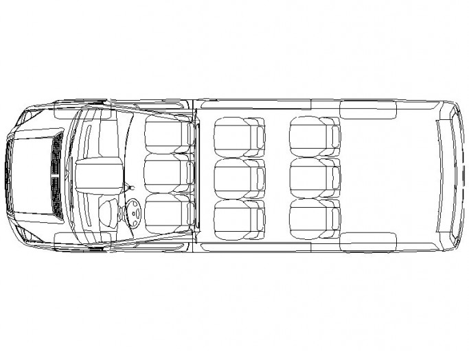 9-Sitzer: Einzelfahrersitz und Doppelbeifahrersitzbank in der 1. Sitzreihe, 3er Sitzbank in der 2. Sitzreihe und eine 3er Sitzbank in der 3. Sitzreihe